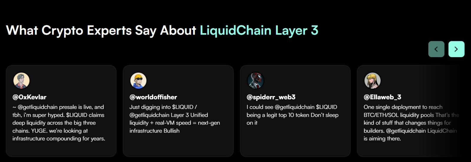 LiquidChain says holders will be able to stake $LIQUID to help secure the network while earning rewards. The project website currently lists an expected ROI of 1665% on staked tokens, a feature aimed at encouraging early participation and longer-term holding after the presale phase ends.