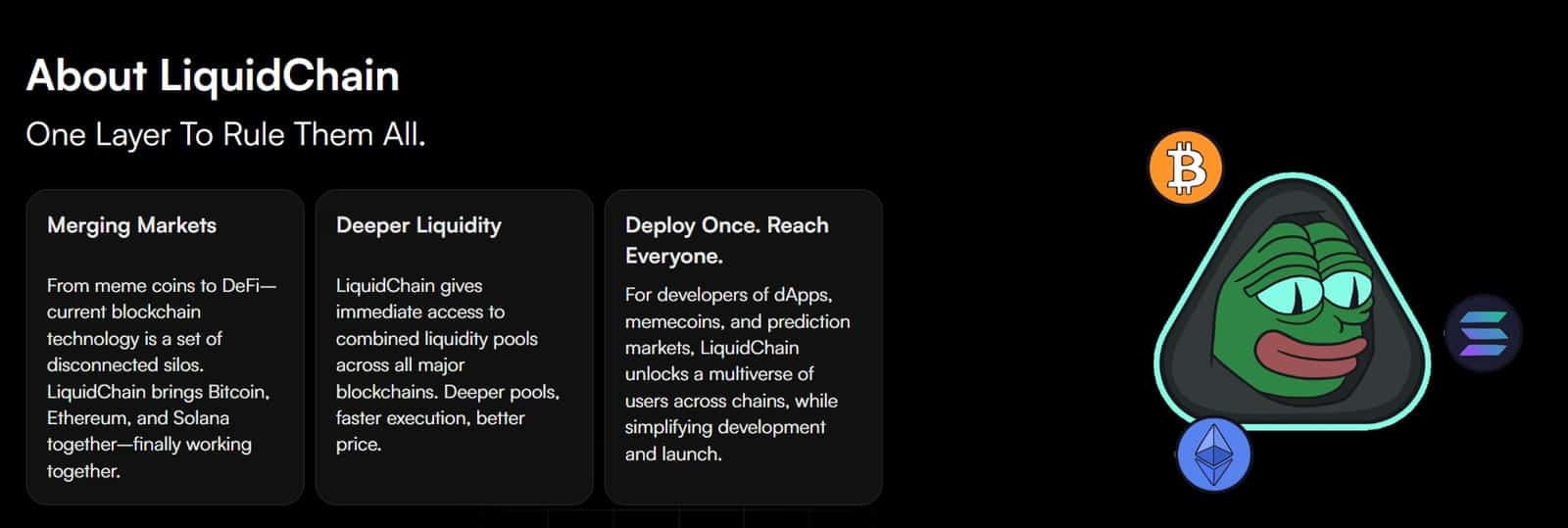 LiquidChain describes itself as the first Layer 3 network built on top of Bitcoin, Ethereum, and Solana, aiming to serve as a unified liquidity and execution layer rather than a traditional Layer 2 or a simple bridge.